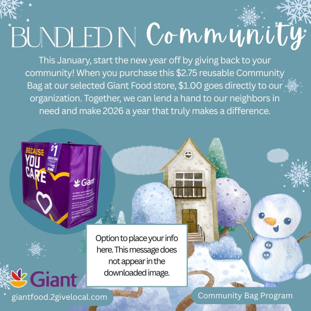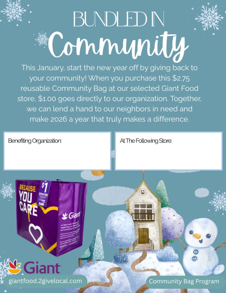 Reach new supporters by putting up flyers around your community! Add your organization’s name and selected Giant Food by inserting a text box directly on the downloaded tool. Or simply download, print, and write in the spaces provided. The more flyers you put around town, the more people will come to support your organization!