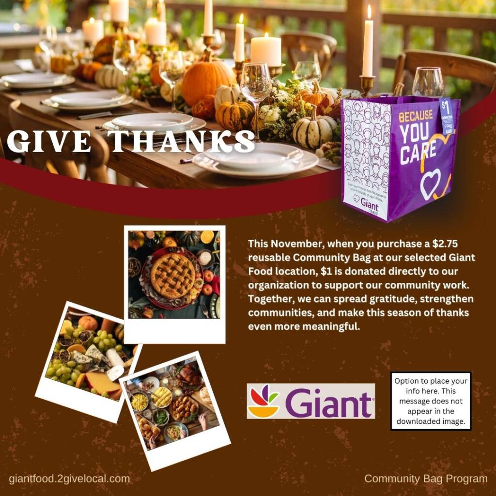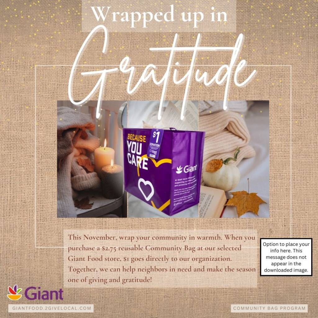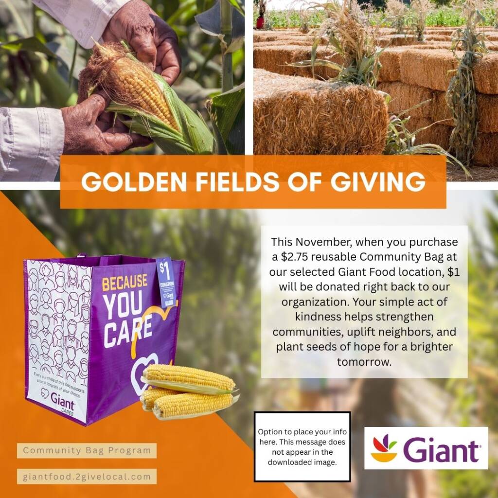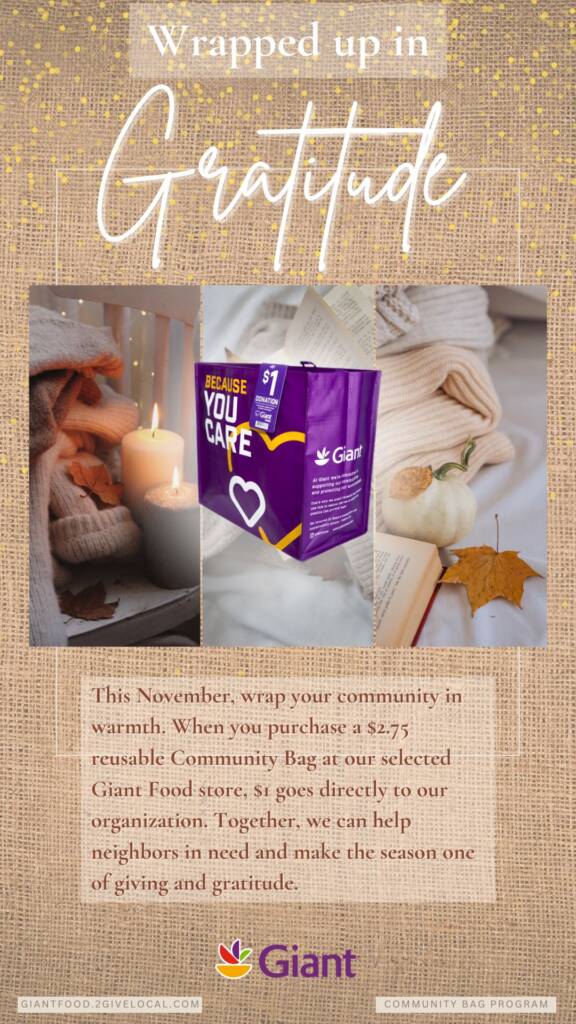 Reach new supporters by putting up flyers around your community! Add your organization’s name and selected Giant Food by inserting a text box directly on the downloaded tool. Or simply download, print, and write in the spaces provided. The more flyers you put around town, the more people will come to support your organization!